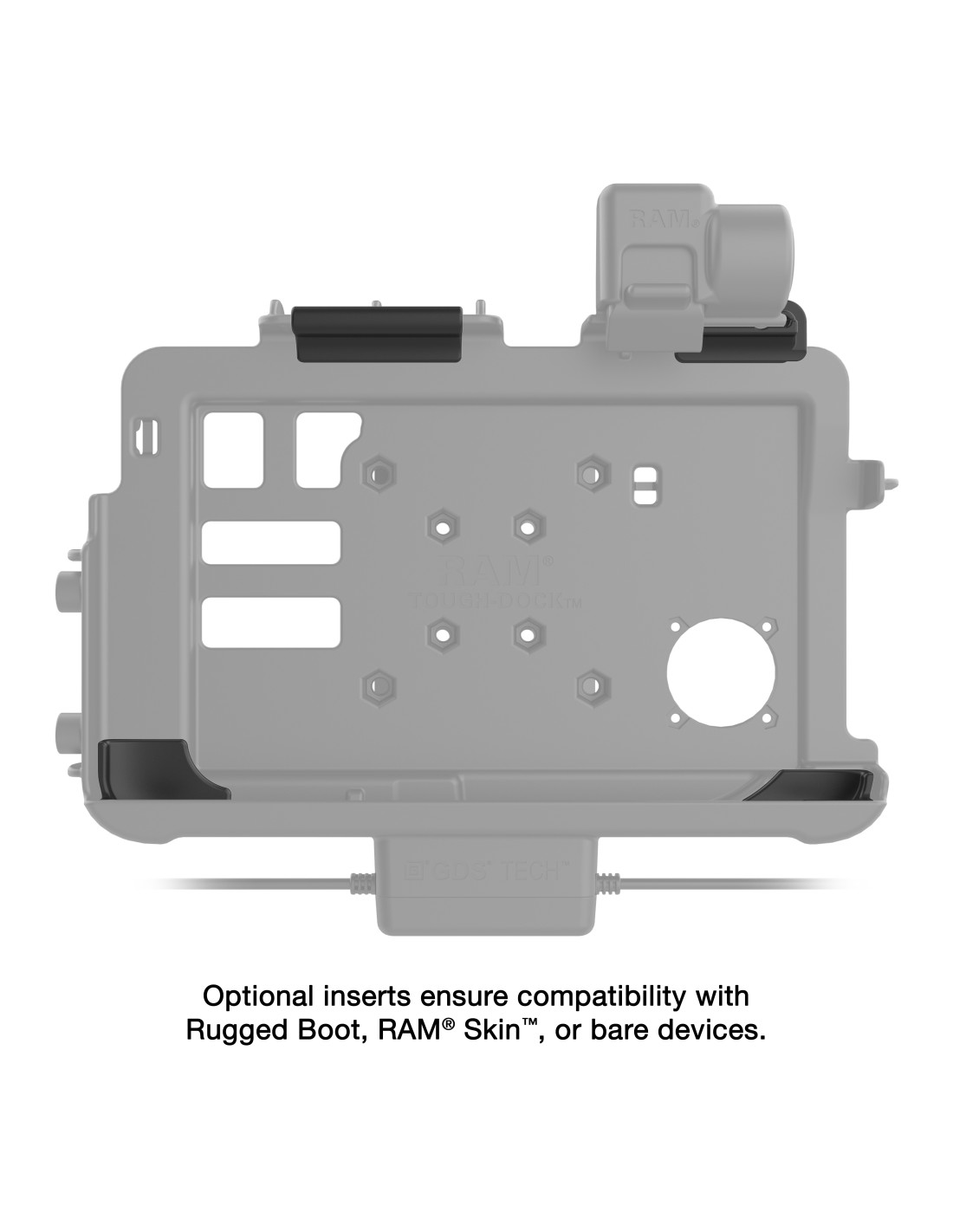 The RAM Thin-Dock + Dual USB for Zebra ET401 & ET4x 10" (RAM-HOL-ZE47PD2U) delivers a low-profile, 2.45"-deep design reinforced with a durable metal plate, ideal for applications where space is limited. This vehicle dock is purpose-built for the Zebra ET401, ET40, and ET45 10" enterprise tablets, connecting directly to the tablet's integrated pogo pins to ensure a reliable, long-lasting mounting and charging solution. Engineered for efficiency, the Thin-Dock keeps your tablet powered through pogo pin contacts while docked, with power supplied via the docks USB Type-C connector. Connect up to two peripheral devices such as a mouse, keyboard, or printer using the peripheral dual USB-A connector. The design also maintains access to the tablets side scanning function, making it a strong fit for field service, warehousing, retail, transportation, and other data-capture environments. Because of its compact footprint, this dock does not support add-ons like the Zebra Expansion Back or PowerPack Battery. For mounting flexibility, the dock is compatible with both RAM C and D size 4-hole AMPS pattern bases, ideal for pairing with a double socket arm to complete your vehicle or workstation setup. This dock also features integrated attachment points for the RAM Vent-Temp, a temperature control accessory, and the RAM NFC Extender. Enhance your workflow further using the integrated 2-hole mounting plate, compatible with RAM 2-hole diamond bases, allowing you to mount an additional device such as a phone, handheld scanner, or other accessories.