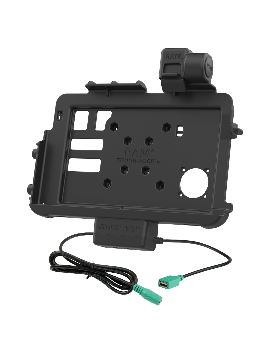 The RAM Thin-Dock + Data Dock for Zebra ET401 & ET4x 10" (RAM-HOL-ZE47PDU) delivers a low-profile, 2.45"-deep design reinforced with a durable metal plate, ideal for applications where space is limited. This vehicle dock is purpose-built for the Zebra ET401, ET40, and ET45 10" enterprise tablets, connecting directly to the tablet's integrated pogo pins to ensure a reliable, long-lasting mounting and charging solution. Engineered for efficiency, the Thin-Dock keeps your tablet powered through pogo pin contacts while docked, with power supplied via the docks USB Type-C connector. Connect a mouse, keyboard, or printer using the peripheral USB-A connector. The design also maintains access to the tablets side scanning function, making it a strong fit for field service, warehousing, retail, transportation, and other data-capture environments. Because of its compact footprint, this dock does not support add-ons like the Zebra Expansion Back or PowerPack Battery. For mounting flexibility, the dock is compatible with both RAM C and D size 4-hole AMPS pattern bases, ideal for pairing with a double socket arm to complete your vehicle or workstation setup. This dock also features integrated attachment points for the RAM Vent-Temp, a temperature control accessory, and the RAM NFC Extender. Enhance your workflow further using the integrated 2-hole mounting plate, compatible with RAM 2-hole diamond bases, allowing you to mount an additional device such as a phone, handheld scanner, or other accessories.
