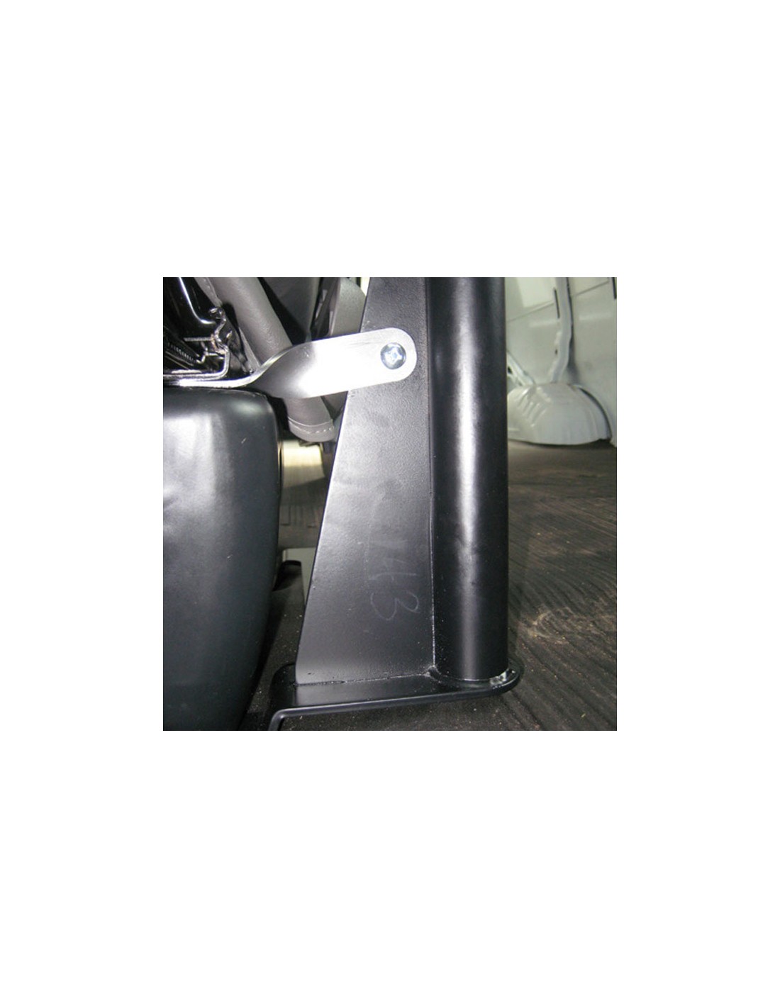 - Custom laptop vehicle mount installs using passenger seat bolts; no drilling required