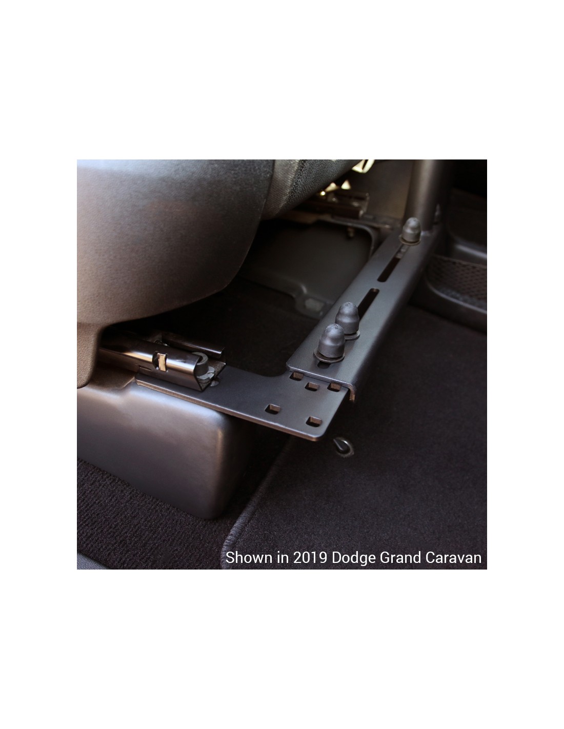 The RAM No-Drill Universal Laptop Mount (RAM-VB-196-SW3) installs quickly and easily to the passenger seat rails using the existing vehicle hardware. This laptop mounting kit is telescoping, allowing users to adjust the height ranges from 12 to 18. Dual swing arms provide articulation and 12 of reach for passenger and driver access to the mounted device. RAM rubber ball and socket technology provides additional adjustability as well as shock and vibration isolation. The spring-loaded RAM Tough-Tray III laptop holder accommodates 10" to 17" laptops (measured diagonally). The tray features four adjustable retaining arms with grips that can be moved both vertically and horizontally. These arms allow for a custom fit for laptops of varying thickness while not blocking drives or ports. Upgrade your mounting kit with compatible accessories that are not included, such as the RAM Adjustable Screen Support and RAM Power Caddy. Integrated 2-hole AMPS mounting locations around the tray perimeter allow for easy attachment of accessories such as printers, handheld devices, or scanners. Verify full range of vehicle compatibility on tab above.