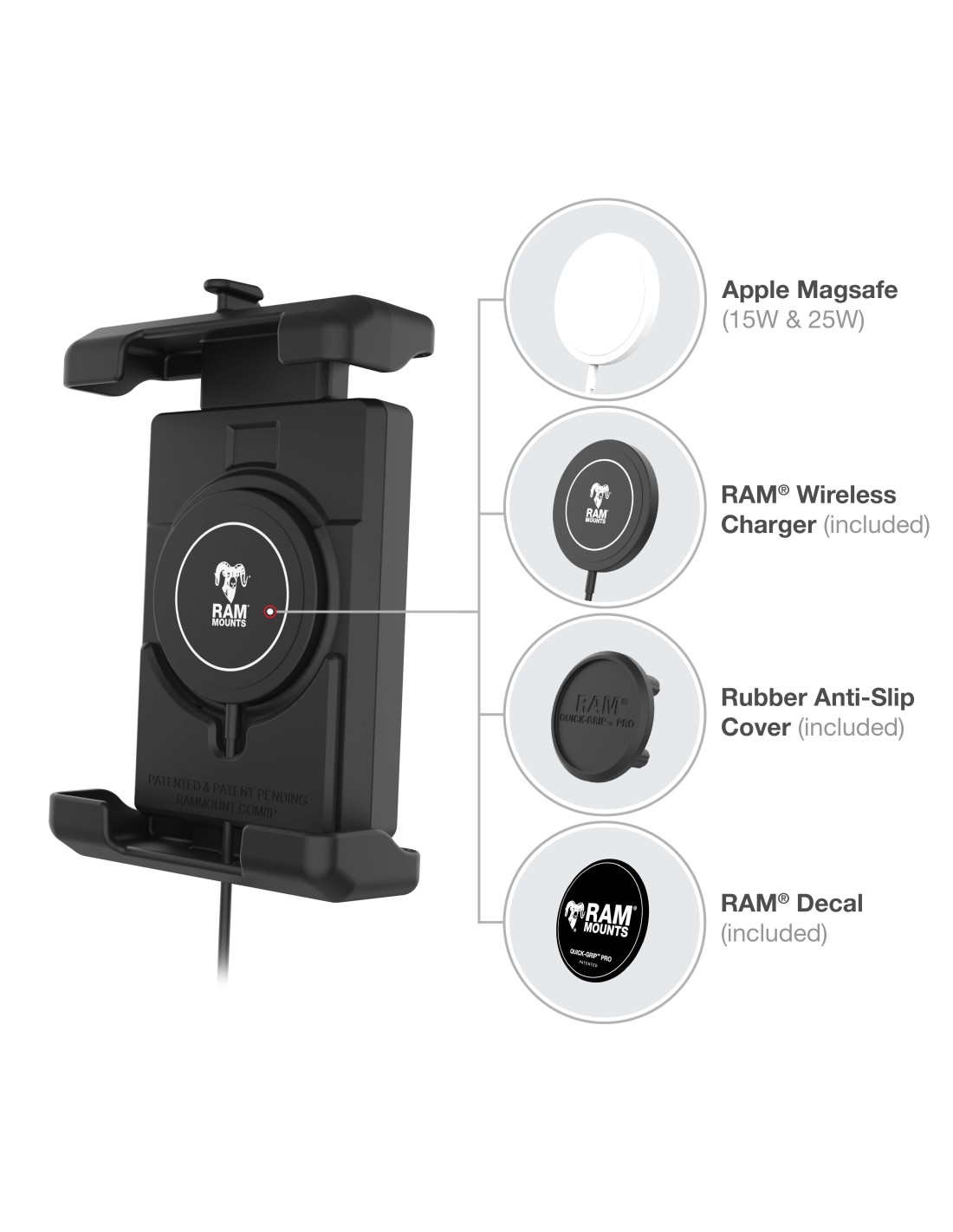 - Includes RAM® Qi2 wireless charger that fits seamlessly in the integrated center cavity