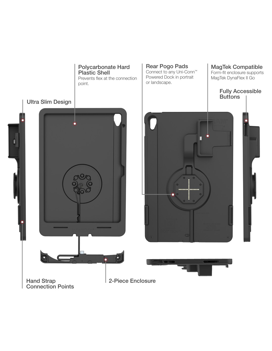 - Two-piece, hard plastic enclosure for iPad 10th/11th Gen with integrated GDS® Uni-ConnT adapter with rear pogo pads
