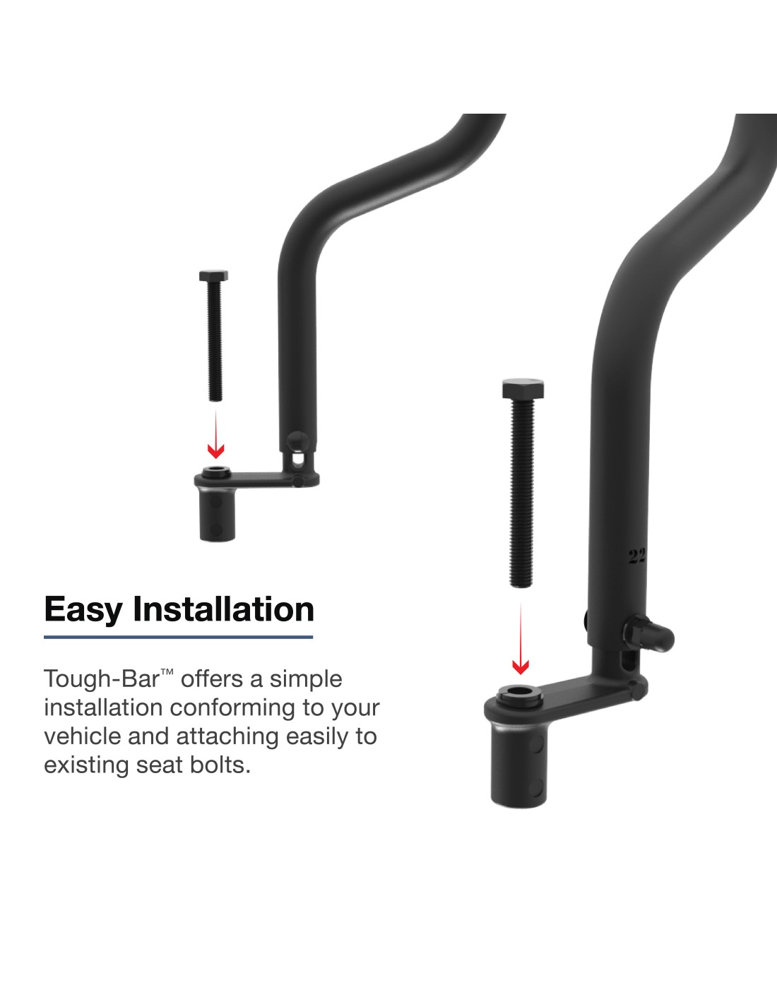 - Preserves passenger legroom while supporting all RAM® rail bases including Tough-ClawT, U-Bolt, and TorqueT bases