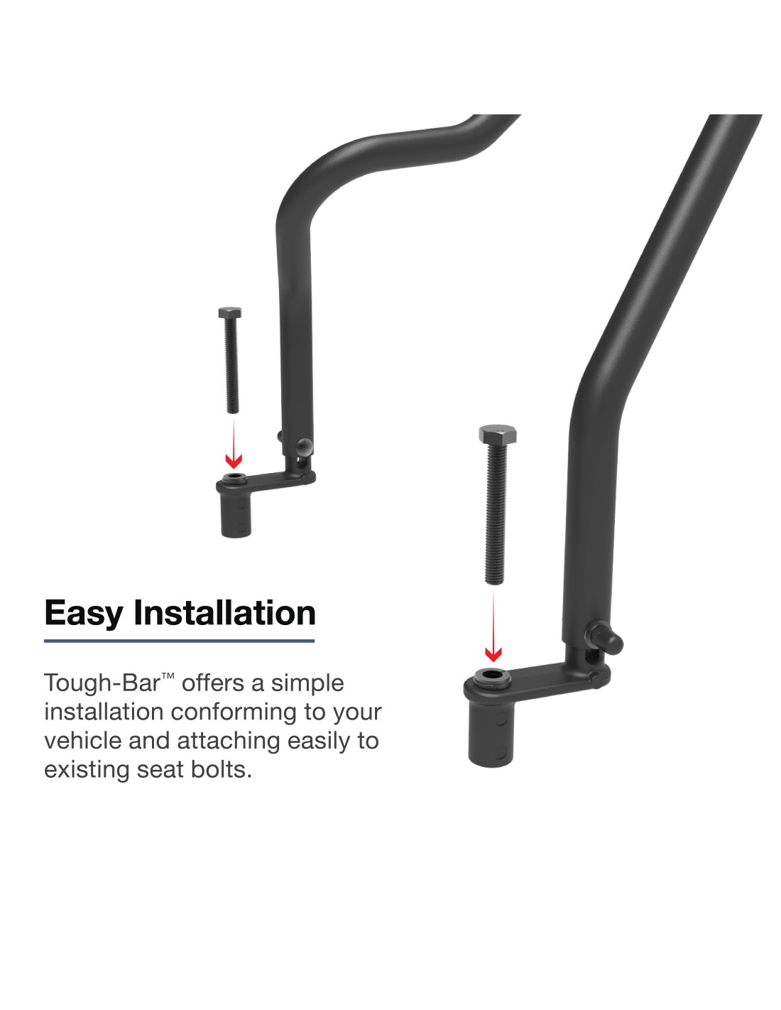 - Secures to the driver seat bolt, passenger seat bolt, and center dash for maximum stability and minimal vibration