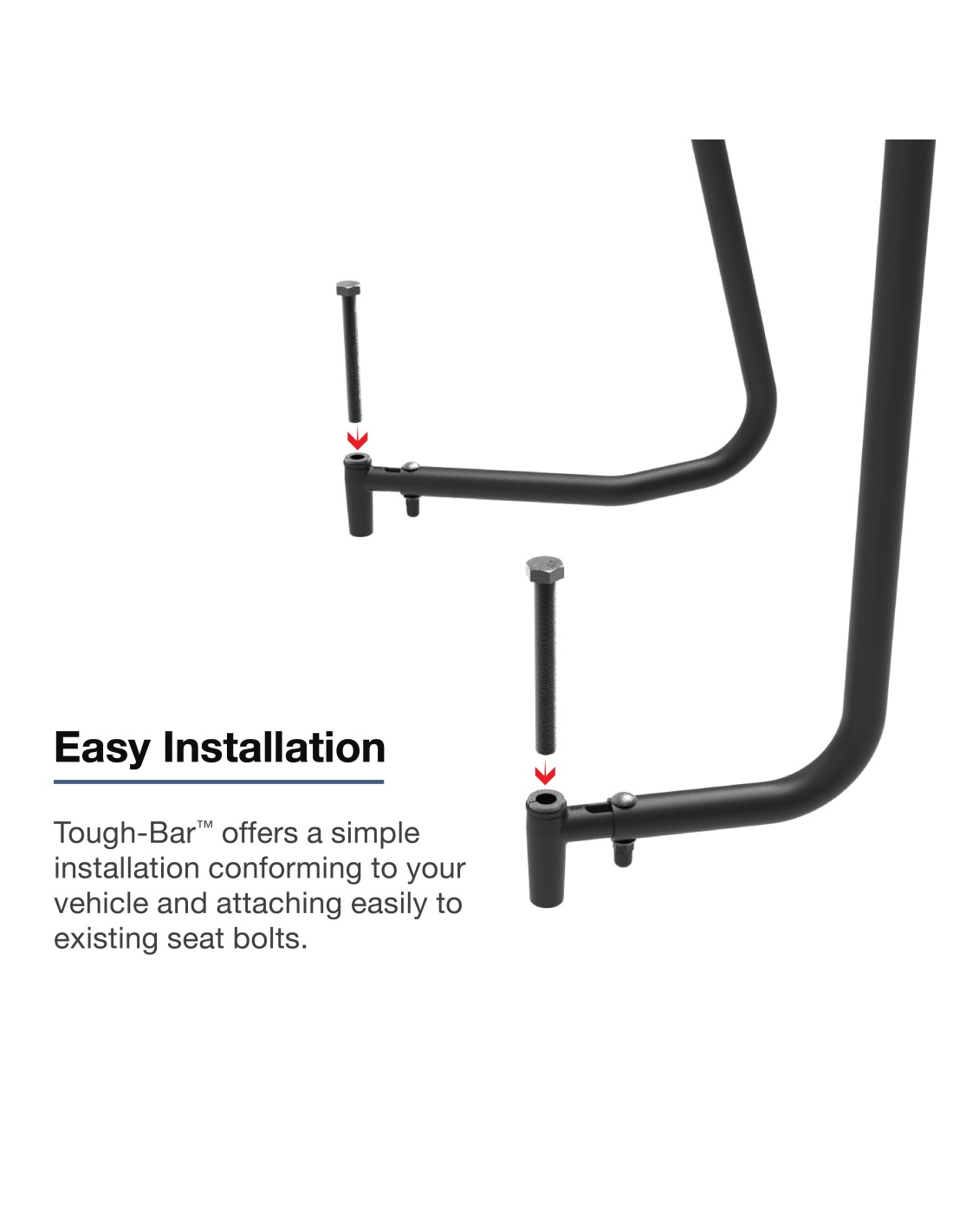 - Secures to the driver seat bolt, passenger seat bolt, and center dash for maximum stability and minimal vibration